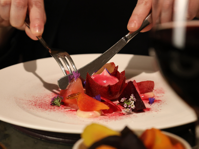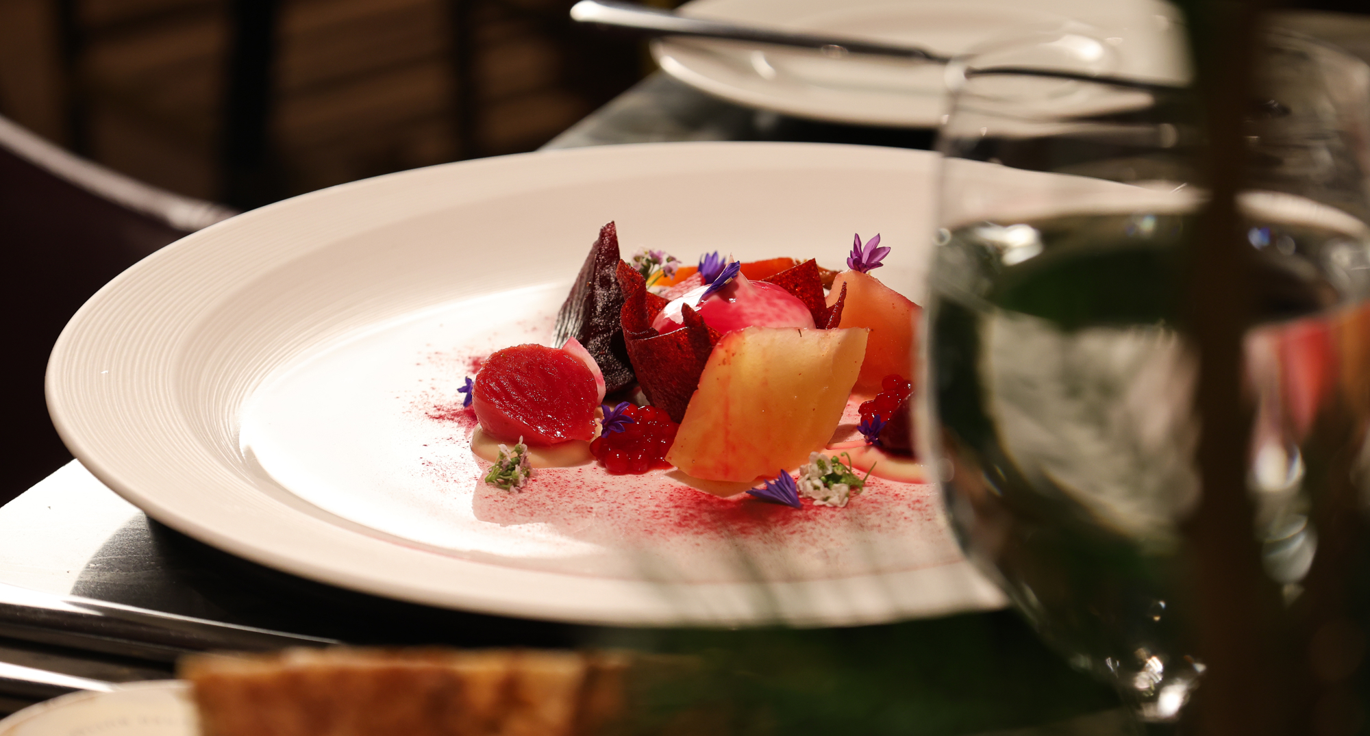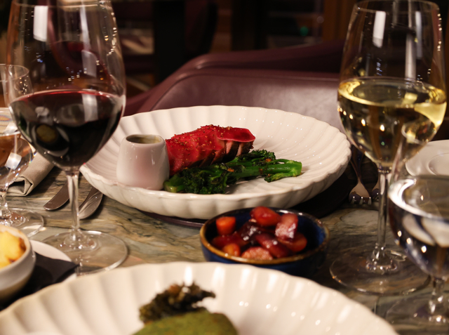 In the onboard restaurant, relax on seats covered in the softest leather and watch the vibrant Leith Docks transform from bold daylight into soft, dusky tones, as the evening sun spills across the ocean.